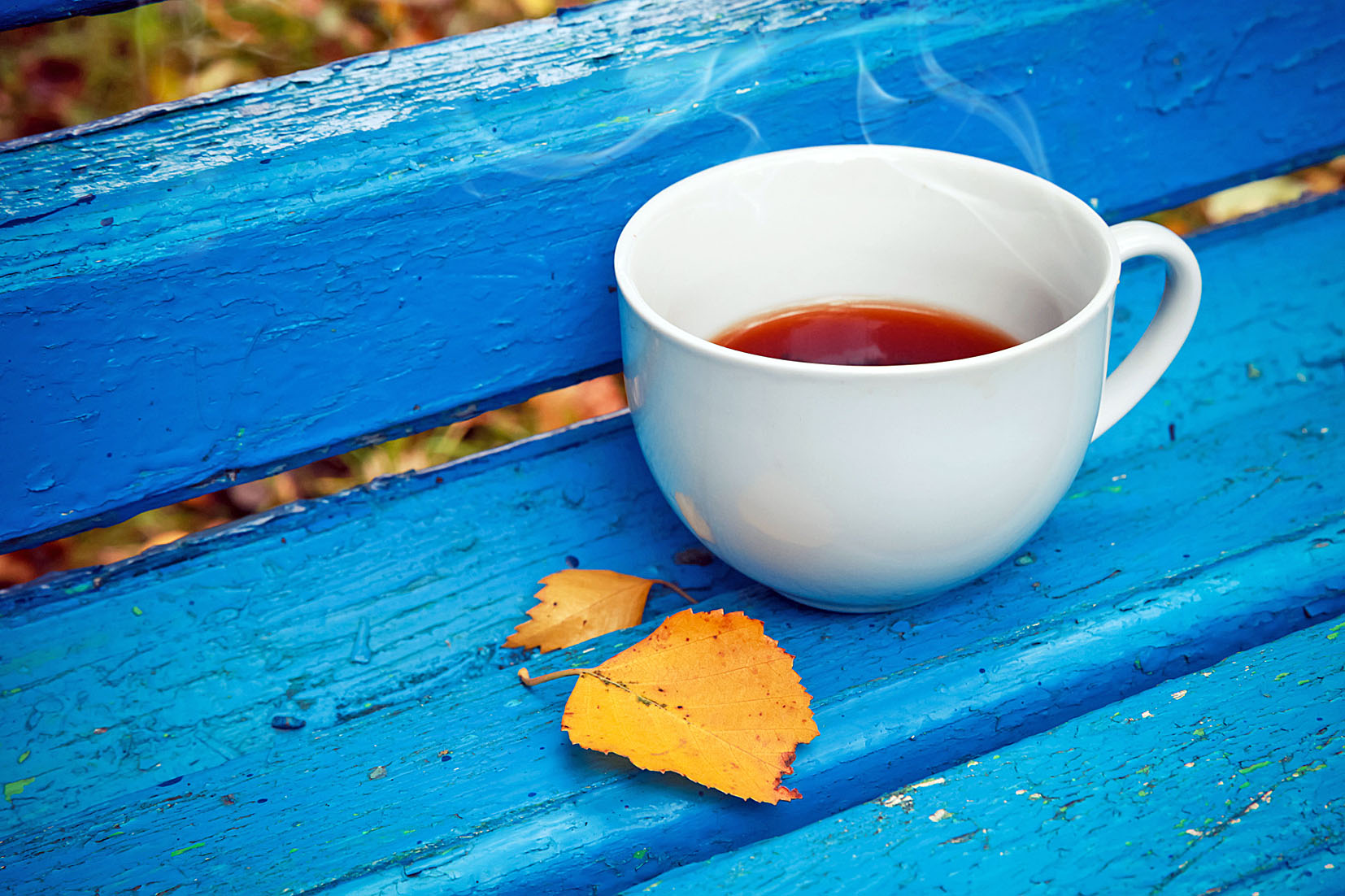 Da steht eine Bank im Garten, direkt unter den zwei Nussbäumen. Bunte Blätter liegen verstreut auf der Bank und dem Boden, wie Farbtupfer. Es ist kühler geworden und sie zieht die Jacke enger um sich. Ihr Blick schweift umher. In der Abenddämmerung schaut sie der Sonne beim Untergehen zu.