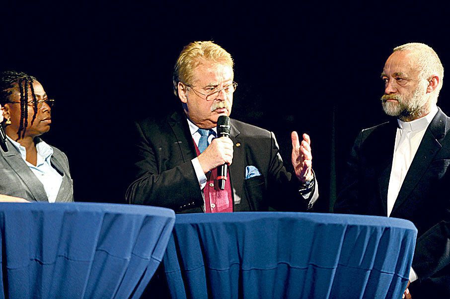 Der EU-Politiker Elmar Brok (CDU) forderte dazu auf, die Ursachen von Fremdenfeindlichkeit anzugehen. Für die Flüchtlingssituation trage auch die Politik Verantwortung. „Wenn wir eine bessere Afrika- und Klimapolitik gemacht hätten, hätten wir nicht so viele Flüchtlinge.“ Als seinen persönlichen Wunsch für das Reformationsjubiläum nannte der katholische Politiker, dessen Frau und Kinder evangelisch sind, dass die katholische Kirche das gemeinsame Abendmahl anerkenne. Er fordere das Bodenpersonal der katholischen Kirche auf, „das Recht, das wir uns genommen haben, formal zuzugestehen“. Der Dechant des Dekanates Bielefeld-Lippe, Klaus Fussy, unterstrich, dass ein Christusfest zum Reformationsjubiläum gemeinsam gefeiert werden könne.