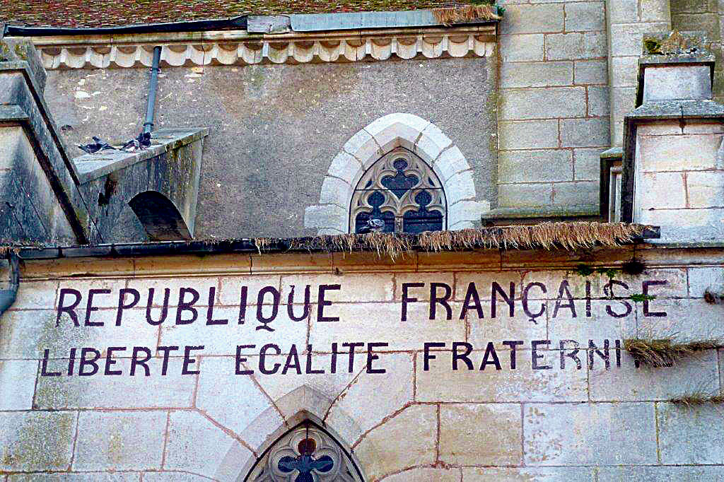 Der Pfarrer verweigerte beides. Gemäß seinem Vornamen fühlte er sich in seiner Kirche an den Dominus, also an Gott den Herrn, gebunden. Das wiederum empfand der Bürgermeister als Affront. Er ließ 1881 nicht nur die Wetterfahne streichen, sondern vor allem auf das bisher der Enteignung entgangene Kirchengebäude mit großer Schrift jene Worte schreiben, die dort bis heute zu lesen sind: „REPUBLIQUE FRANÇAISE LIBERTE EGALITE FRATERNITE“.