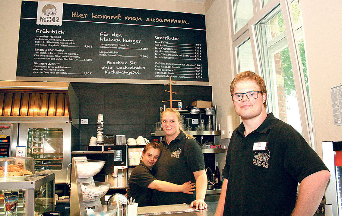 Der „Bahnsteig 42“ ist ein Inklusionsprojekt mit Vorzeigecharakter. Im alten Bahnhofsgebäude von Letmathe, einem Stadtteil von Iserlohn, arbeiten Menschen mit und ohne Behinderung zusammen. Beispielsweise im hauseigenen Café-Bistro, das seit April 2015 von Mitarbeitenden der Iserlohner Werkstätten in Kooperation mit dem „dia-service“, dem Gastronomie-Dienstleister der Diakonie Mark-Ruhr, betrieben wird.