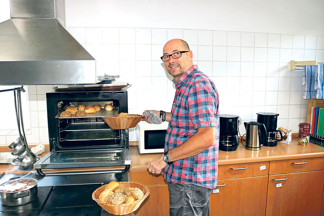 „Ich kenn mich in der Küche hier nicht so gut aus. Das merke ich daran, dass ich einen Topf genommen habe, der immer stärker wackelt, je wärmer er wird“, sagt Heinz Sobioch mit einem leichten Kopfschütteln. Doch das hält ihn nicht davon ab, das Wasser für die Eier weiter zu erhitzen. Die Brötchen sind schon in den Backofen gelegt, die Kaffeemaschinen sind befüllt. „Ich muss gleich nur noch auf die Knöpfe drücken, dann ist alles rechtzeitig fertig.“