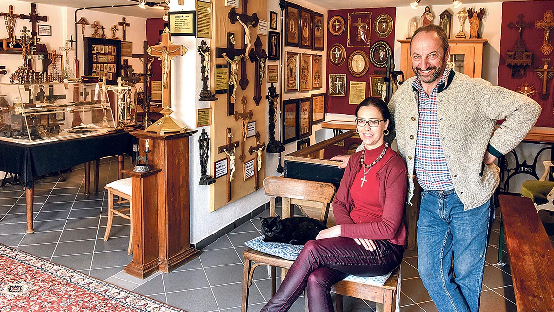 Es sind keine goldenen oder mit Edelsteinen besetzten Kruzifixe, für die sich das Paar interessiert. Materiell kostbare Schätze finden sich in dem Museum kaum – vielmehr volkstümliche Kreuze, die einen hohen immateriellen Wert besitzen.