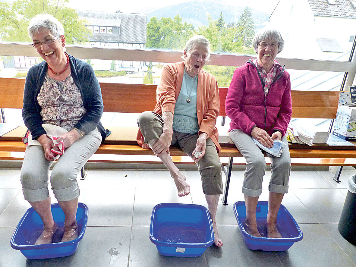 Pfarrer Dietmar Schorstein und seine Tochter begleiteten die Wegstrecke mit „Ein feste Burg ist unser Gott“ an Orgel und Trompete. Die Barfußgänger hatten unterwegs viel gelesen und noch mehr gespürt, sehr unterschiedlich waren die Empfindungen: „Ich weiß, wie man gut über Reisig hinwegkommt. Ich mach das öfter im Wald“, sagte ein Frau aus der Gemeinde, eine andere wollte, nachdem sie ihre Füße schon gewaschen hatte, noch ein zweites Mal den Weg nachgehen. Soviel Spaß hatte ihr das gemacht. Über einen Barfußweg Kirchengeschichte zu erlaufen, ist auf jeden Fall ein sehr eindrückliches Erlebnis.