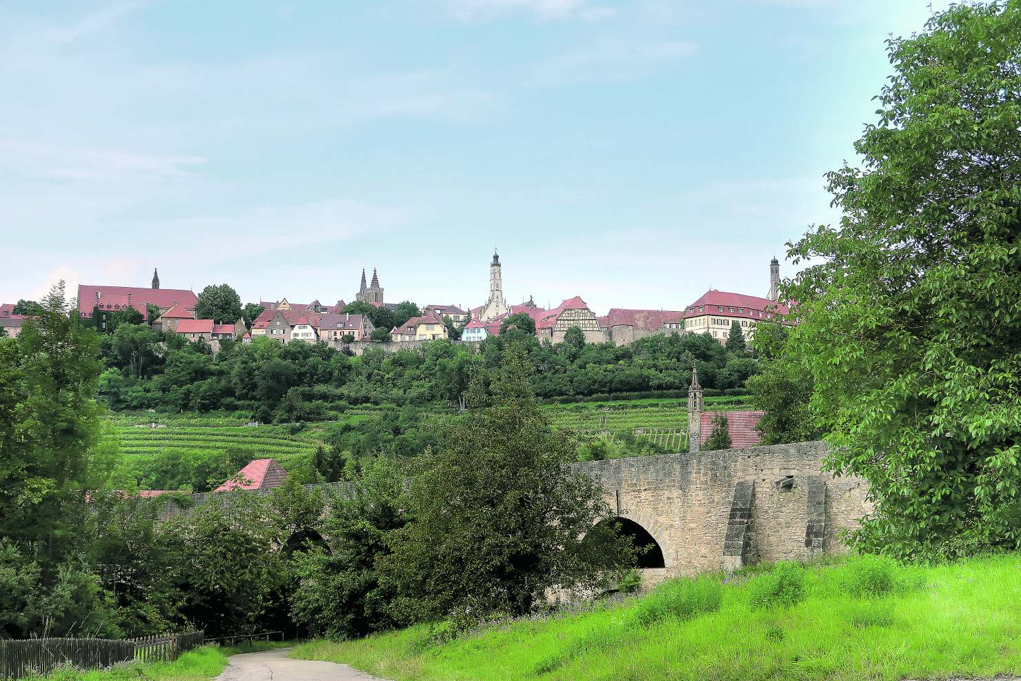 Nicht nur die Stadtmauer umgibt Rothenburg, sondern auch ein Grüngürtel. Dort finden sich tolle Spielplätze und Spazierwege. Besonders das Taubertal lädt zum Spazierengehen und Wandern ein.