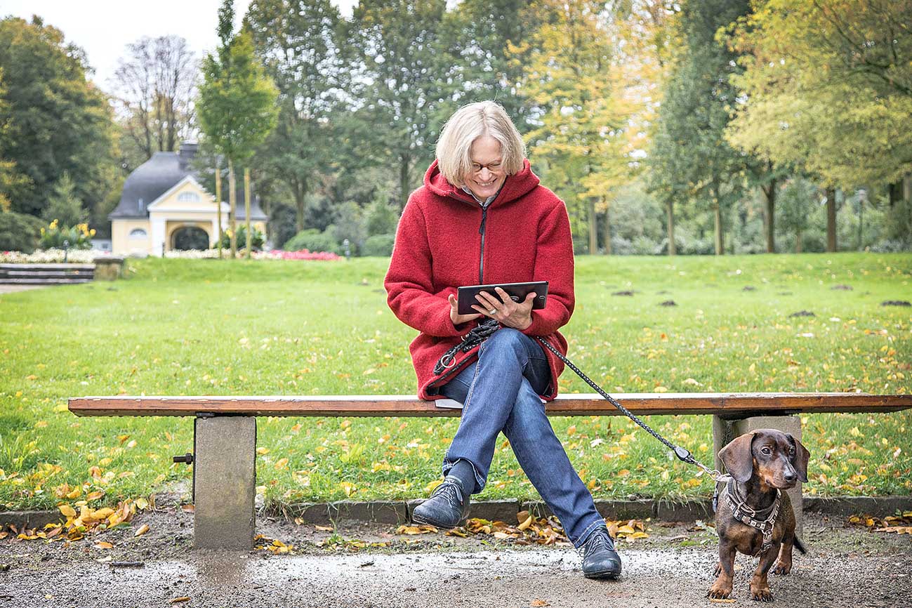„Mit dem zusätzlichen Abonnement für die Digitalausgabe kann ich UK nicht nur auf dem Papier lesen, sondern auch auf dem Tabletcomputer – und auf dem Smartphone“, erklärt sie. „Ich bin leidenschaftlich gern draußen an der frischen Luft“, schwärmt Barbi Mohr. Spazierengehen mit Dackel „Amigo“, Wandern, Fotostreifzüge durchs Ruhrgebiet – „da kann ich UK jetzt jederzeit in der Jackentasche bei mir haben“.