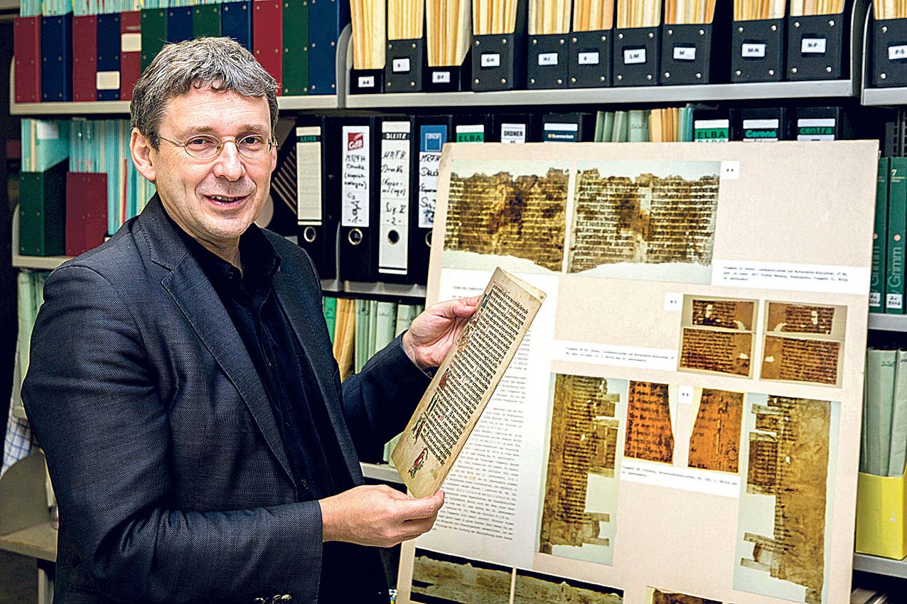 Der Zensus, so die Akademie, „sichert einen bedeutenden Schatz unseres kulturellen Erbes“. Das Projekt ist am Institut für Deutsche Philologie des Mittelalters in Marburg angesiedelt, Wolf leitet das Projekt gemeinsam mit Nathanael Busch von der Universität Siegen. „Wir wollen die Grundlagen legen, mit denen geforscht werden kann“, sagt Wolf. Und er will retten, was zu retten ist: 95 Prozent der deutschen Handschriften des Mittelalters existieren nicht mehr. Durch Kriege und Handel wurden die Überbleibsel über die ganze Welt verstreut, in die USA, nach England, Südafrika, Russland oder ins Baltikum, in staatliche Bibliotheken oder private Sammlungen.